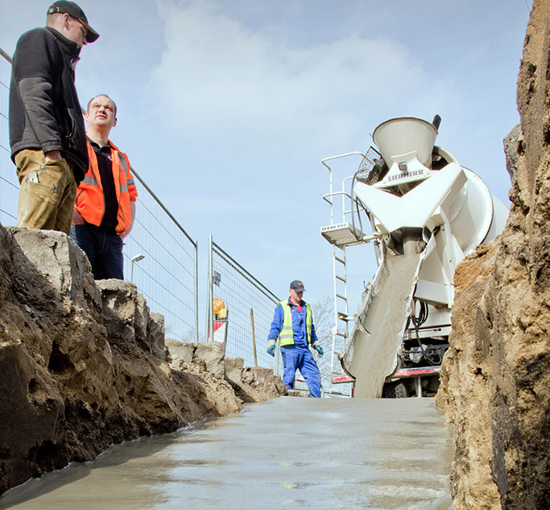 Wir bieten Baustoffherstellern und Bauunternehmungen Leistungen im Bereich der fließfähigen, selbstverdichtenden Verfüllbaustoffe an.