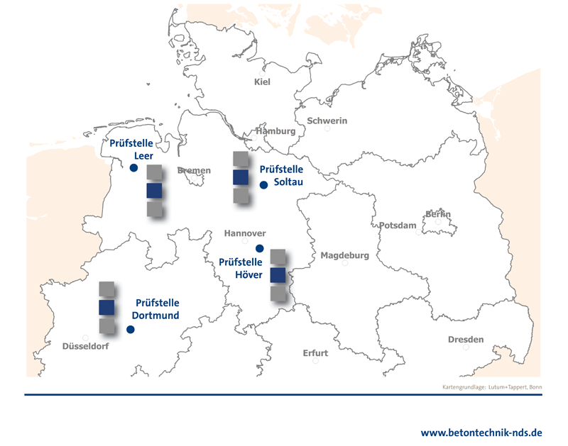 Die Kontaktdaten zu unseren Prüfstellen erhalten Sie per Klick auf den gewünschten Ort.